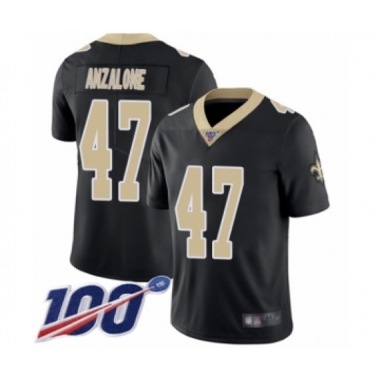 >Men's New Orleans Saints #47 Alex Anzalone Black Team Color Vapor Untouchable Limited Player 100th Season Football Jersey