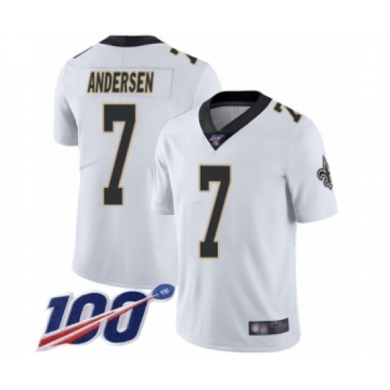 >Men's New Orleans Saints #7 Morten Andersen White Vapor Untouchable Limited Player 100th Season Football Jersey