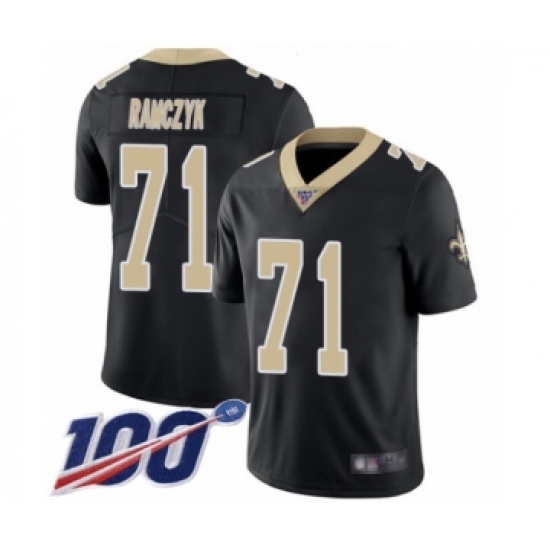 >Men's New Orleans Saints #71 Ryan Ramczyk Black Team Color Vapor Untouchable Limited Player 100th Season Football Jersey