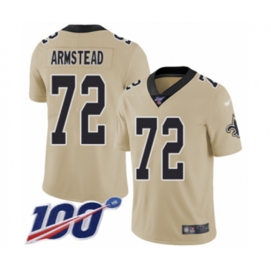 >Men's New Orleans Saints #72 Terron Armstead Limited Gold Inverted Legend 100th Season Football Jersey