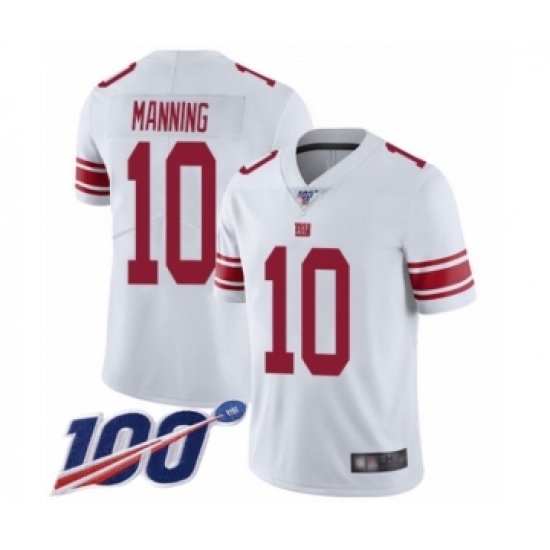 Men's New York Giants #10 Eli Manning White Vapor Untouchable Limited Player 100th Season Football Jersey