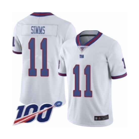 >Men's New York Giants #11 Phil Simms Limited White Rush Vapor Untouchable 100th Season Football Jersey