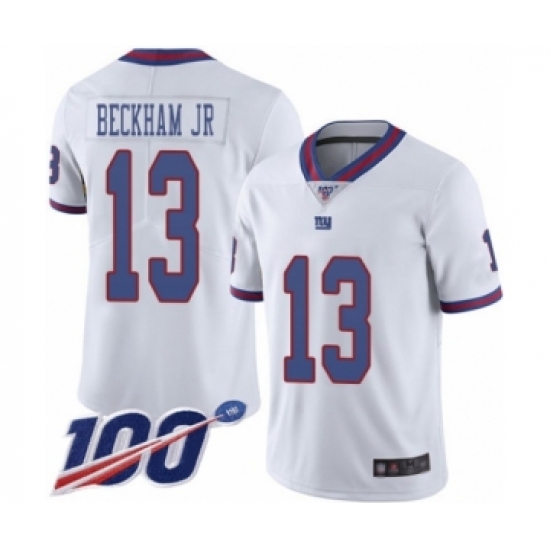 Men's New York Giants #13 Odell Beckham Jr Limited White Rush Vapor Untouchable 100th Season Football Jersey