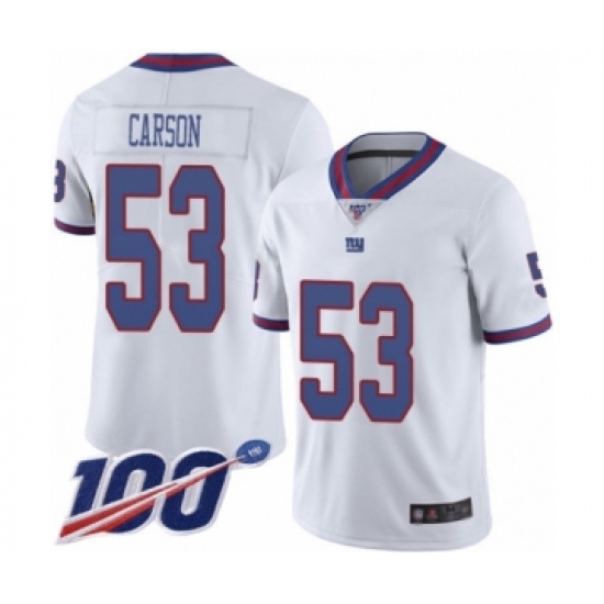>Men's New York Giants #53 Harry Carson Limited White Rush Vapor Untouchable 100th Season Football Jersey