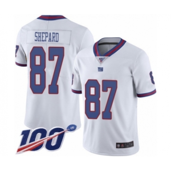 >Men's New York Giants #87 Sterling Shepard Limited White Rush Vapor Untouchable 100th Season Football Jersey