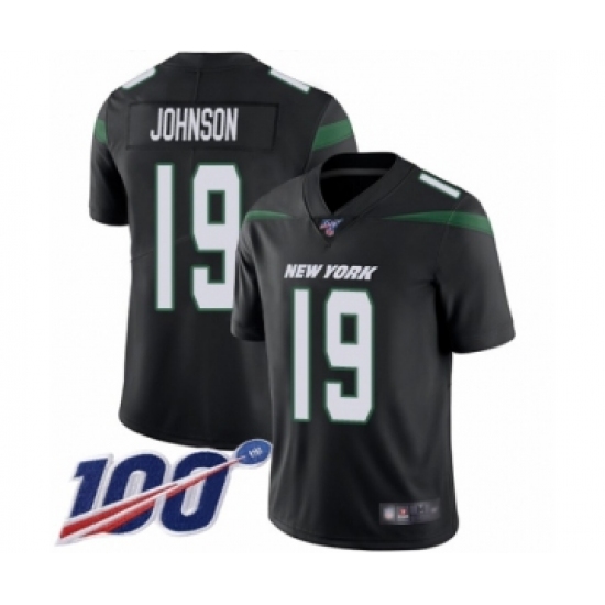 >Men's New York Jets #19 Keyshawn Johnson Black Alternate Vapor Untouchable Limited Player 100th Season Football Jersey