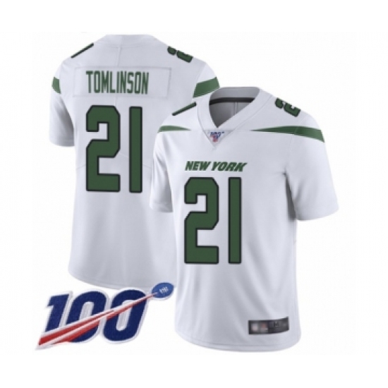 >Men's New York Jets #21 LaDainian Tomlinson White Vapor Untouchable Limited Player 100th Season Football Jersey