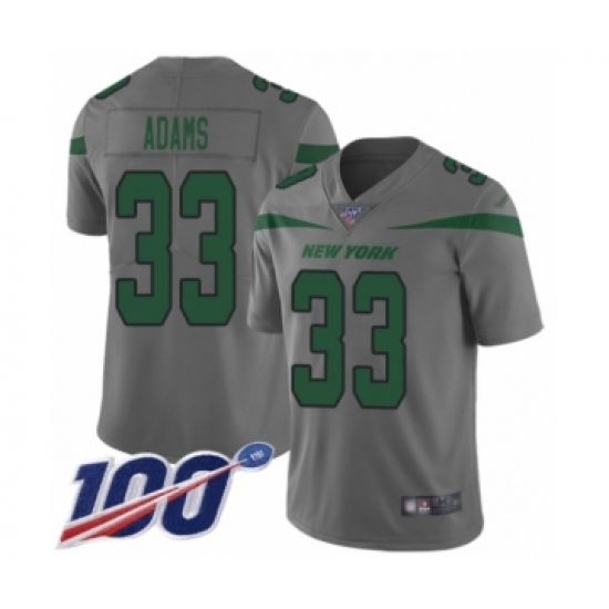 >Men's New York Jets #33 Jamal Adams Limited Gray Inverted Legend 100th Season Football Jersey