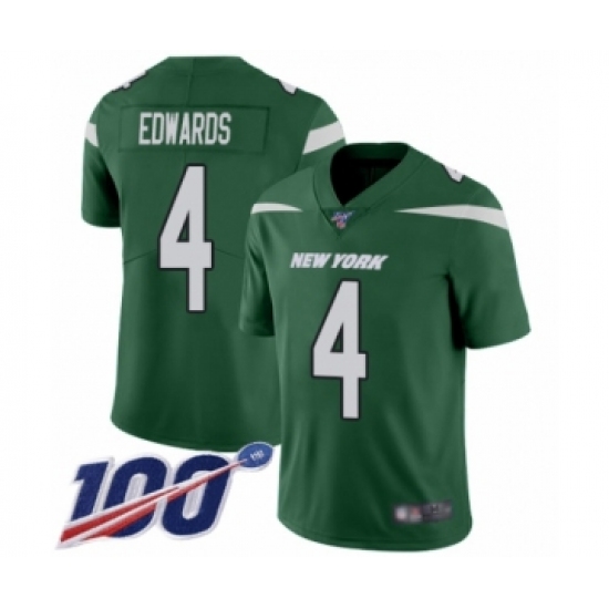 >Men's New York Jets #4 Lac Edwards Green Team Color Vapor Untouchable Limited Player 100th Season Football Jersey