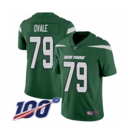 Men's New York Jets #79 Brent Qvale Green Team Color Vapor Untouchable Limited Player 100th Season Football Jersey