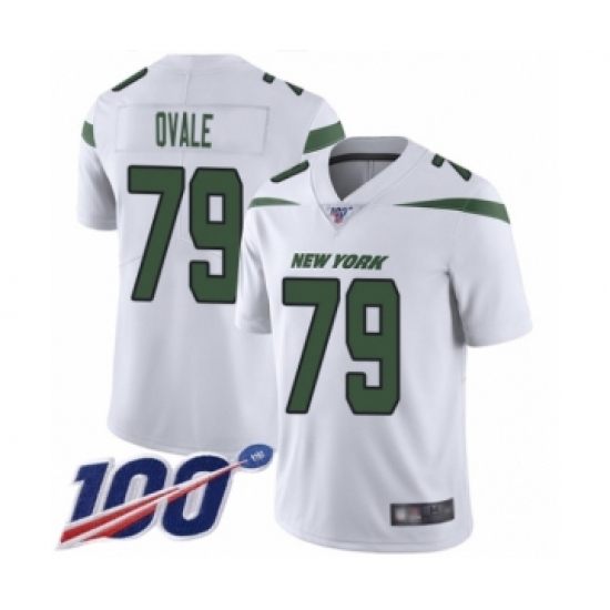 >Men's New York Jets #79 Brent Qvale White Vapor Untouchable Limited Player 100th Season Football Jersey