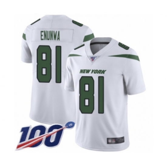 >Men's New York Jets #81 Quincy Enunwa White Vapor Untouchable Limited Player 100th Season Football Jersey
