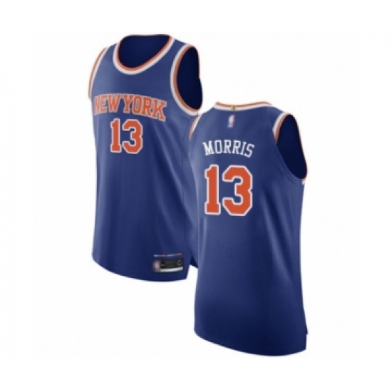 >Men's New York Knicks #13 Marcus Morris Authentic Royal Blue Basketball Jersey - Icon Edition