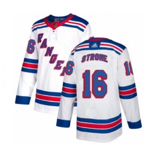 >Men's New York Rangers #16 Ryan Strome Authentic White Away Hockey Jersey