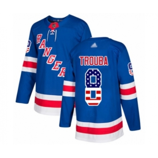 >Men's New York Rangers #8 Jacob Trouba Authentic Royal Blue USA Flag Fashion Hockey Jersey