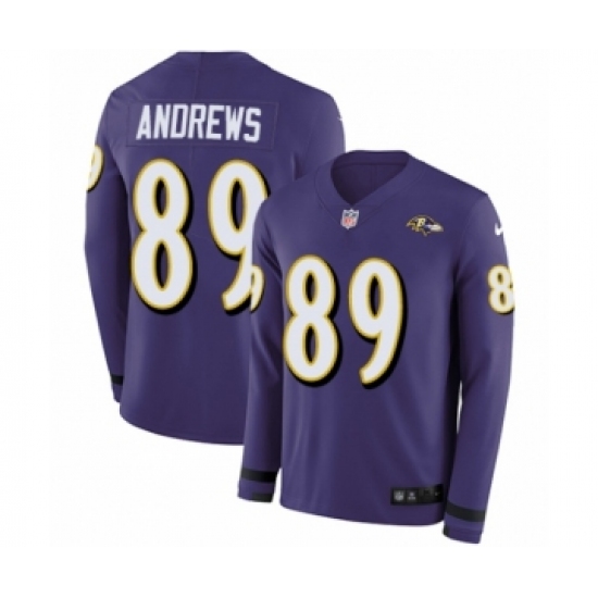 >Men's Nike Baltimore Ravens #89 Mark Andrews Limited Purple Therma Long Sleeve NFL Jersey