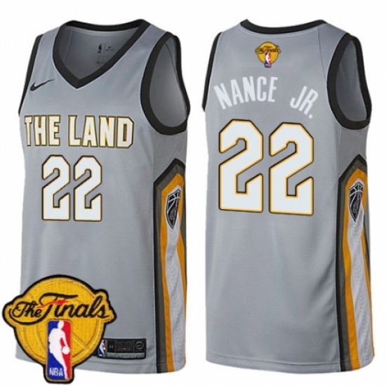 >Men's Nike Cleveland Cavaliers #22 Larry Nance Jr. Swingman Gray 2018 NBA Finals Bound NBA Jersey - City Edition