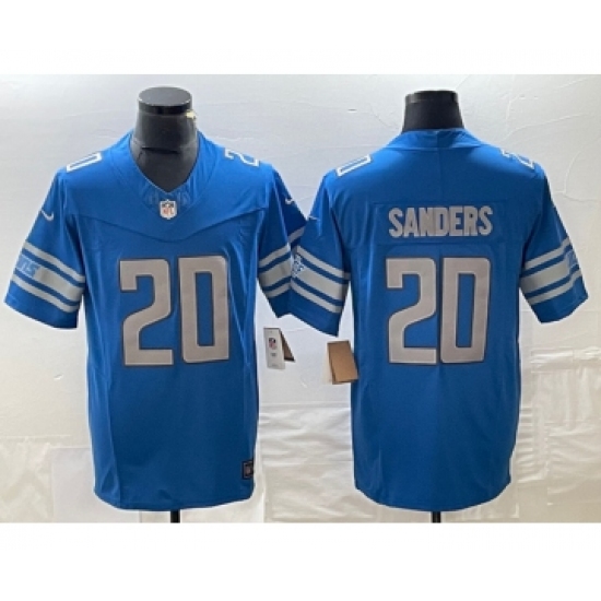 >Men's Nike Detroit Lions #20 Barry Sanders Blue 2023 F.U.S.E. Vapor Untouchable Limited Football Stitched Jersey