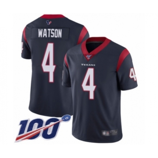 Men's Nike Houston Texans #4 Deshaun Watson Navy Blue Team Color Vapor Untouchable Limited Player 100th Season NFL Jersey
