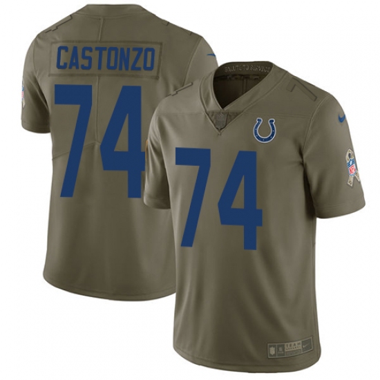 Home>NFL>Indianapolis Colts>Anthony Castonzo>Men's Nike Indianapolis Colts #74 Anthony Castonzo Limited Olive 2017 Salute to Service NFL Jersey