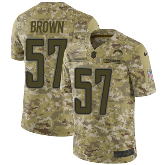 >Men's Nike Los Angeles Chargers #57 Jatavis Brown Limited Camo 2018 Salute to Service NFL Jersey