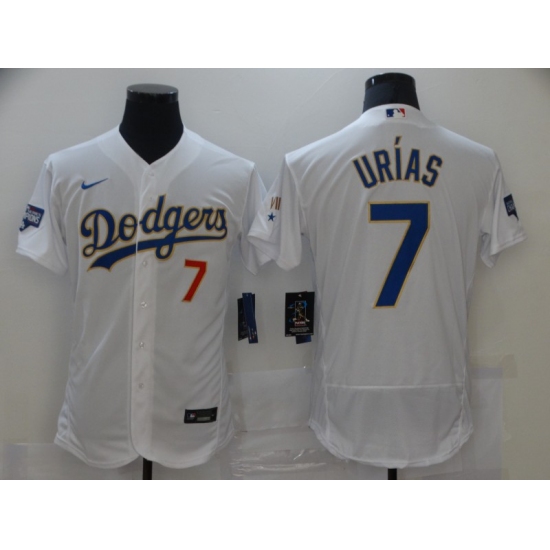 >Men's Nike Los Angeles Dodgers #7 Julio Urias White World Series Champions Authentic Jersey