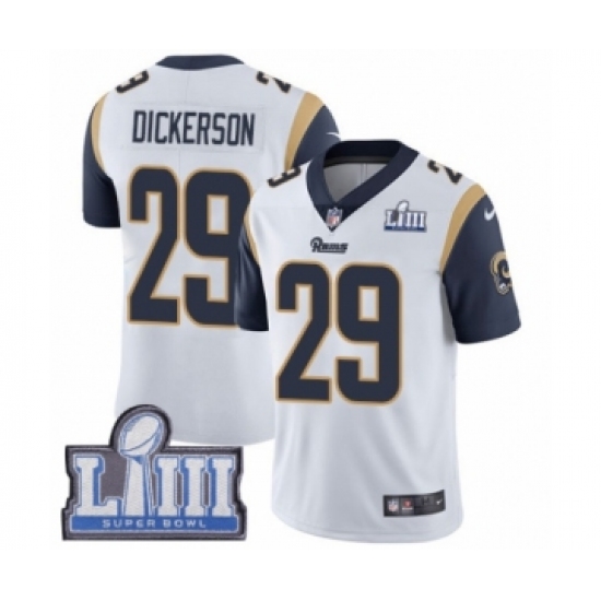 Men's Nike Los Angeles Rams #29 Eric Dickerson White Vapor Untouchable Limited Player Super Bowl LIII Bound NFL JerseyJersey