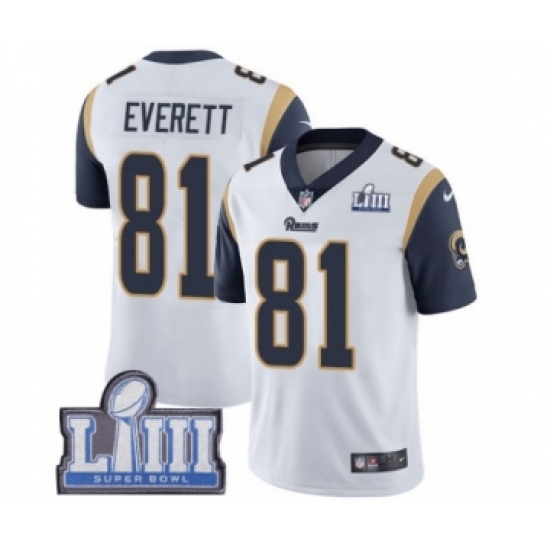 >Men's Nike Los Angeles Rams #81 Gerald Everett White Vapor Untouchable Limited Player Super Bowl LIII Bound NFL Jersey