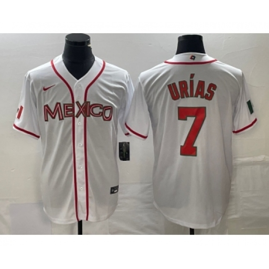>Men's Nike Mexico Baseball #7 Julio Urias NEW 2023 White World Classic Stitched Jersey