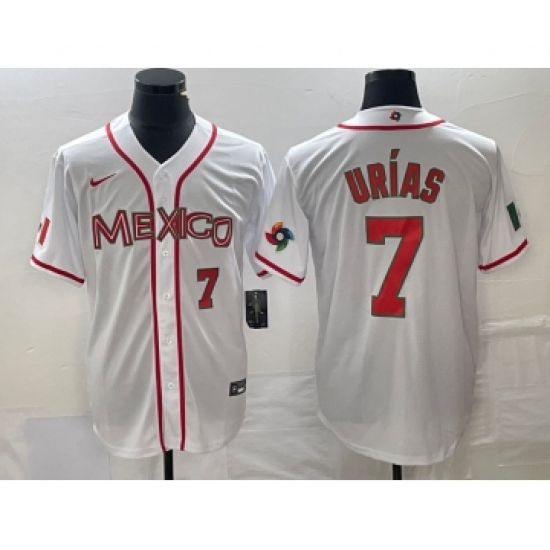Men's Mexico Baseball #7 Julio Urias 2023 White World Classic Stitched Jerseys