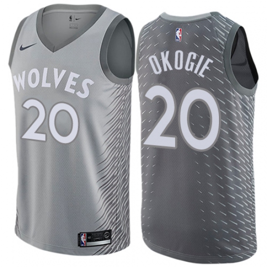 >Men's Nike Minnesota Timberwolves #20 Josh Okogie Swingman Gray NBA Jersey - City Edition