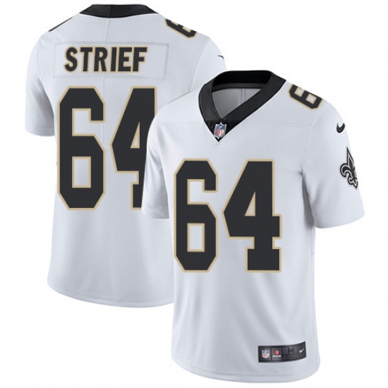 Home>NFL>New Orleans Saints>Zach Strief>Men's Nike New Orleans Saints #64 Zach Strief White Vapor Untouchable Limited Player NFL Jersey