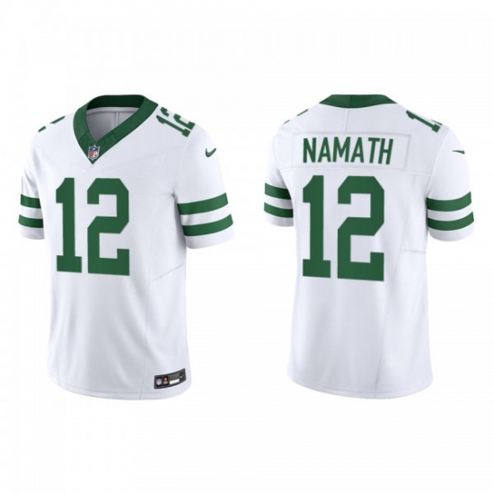 >Men's Nike New York Jets #12 Joe Namath White 2023 F.U.S.E. Vapor Limited Throwback Stitched Football Jersey