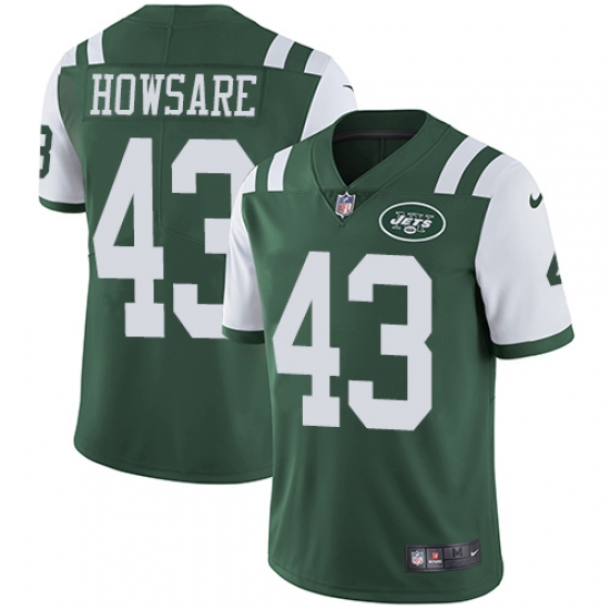 Home>NFL>New York Jets>Julian Howsare>Men's Nike New York Jets #43 Julian Howsare Green Team Color Vapor Untouchable Limited Player NFL Jersey
