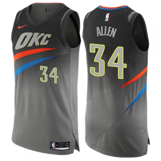 >Men's Nike Oklahoma City Thunder #34 Ray Allen Authentic Gray NBA Jersey - City Edition