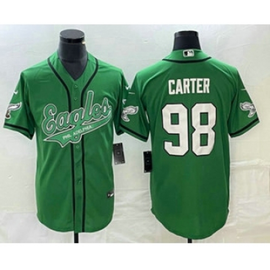 Men's Nike Philadelphia Eagles #98 Jalen Carter Green Cool Base Stitched Baseball Jersey