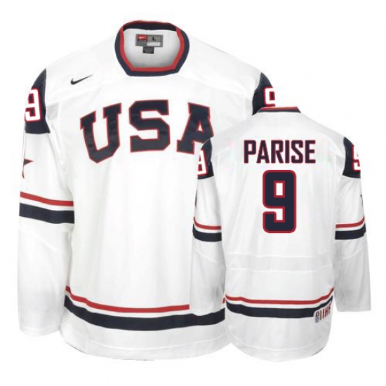 Men's Nike Team USA #9 Zach Parise Authentic White 2010 Olympic Hockey Jersey