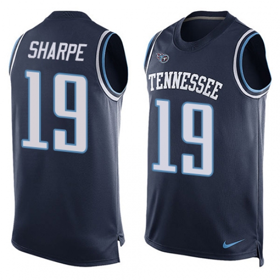 Home>NFL>Tennessee Titans>Tajae Sharpe>Men's Nike Tennessee Titans #19 Tajae Sharpe Limited Navy Blue Player Name & Number Tank Top NFL Jersey