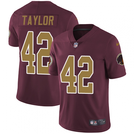 Home>NFL>Washington Redskins>Charley Taylor>Men's Nike Washington Redskins #42 Charley Taylor Burgundy Red/Gold Number Alternate 80TH Anniversary Vapor Untouchable Limited Player NFL Jersey