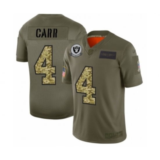 >Men's Oakland Raiders #4 Derek Carr 2019 Olive Camo Salute to Service Limited Jersey