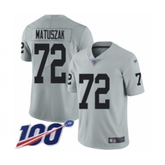 Men's Oakland Raiders #72 John Matuszak Limited Silver Inverted Legend 100th Season Football Jersey