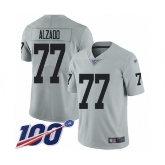 >Men's Oakland Raiders #77 Lyle Alzado Limited Silver Inverted Legend 100th Season Football Jersey