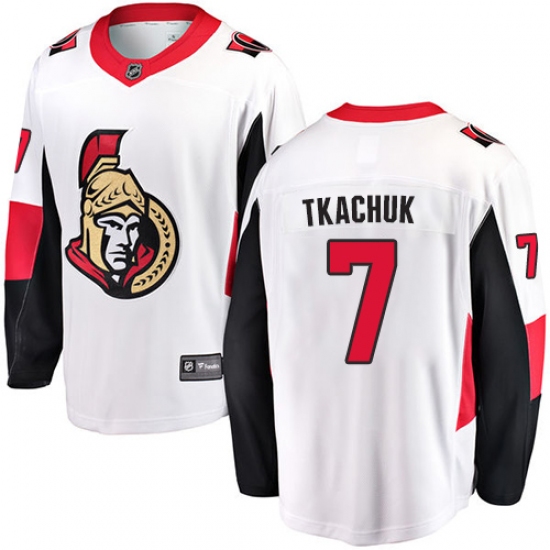>Men's Ottawa Senators #7 Brady Tkachuk Fanatics Branded White Away Breakaway NHL Jersey