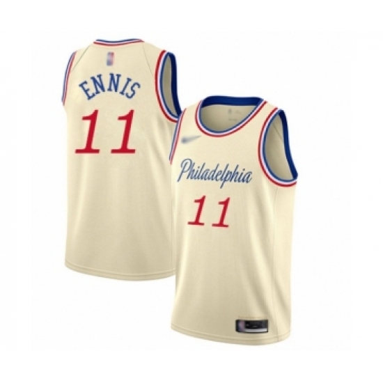 >Men's Philadelphia 76ers #11 James Ennis Swingman Cream Basketball Jersey - 2019 20 City Edition