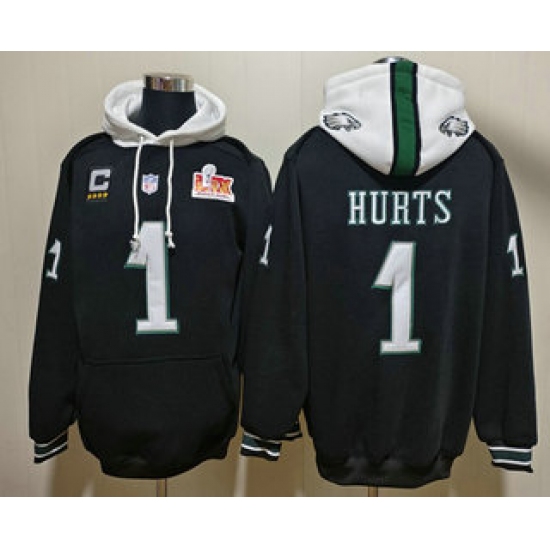 Men's Philadelphia Eagles #1 Jalen Hurts Black Super Bowl LIX Pullover Hoodie