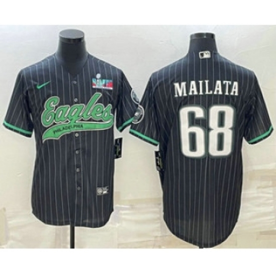 Men's Philadelphia Eagles #68 Jordan Mailata Black Pinstripe With Super Bowl LVII Patch Cool Base Stitched Baseball Jersey