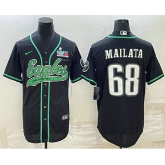Men's Philadelphia Eagles #68 Jordan Mailata Black With Super Bowl LVII Patch Cool Base Stitched Baseball Jersey