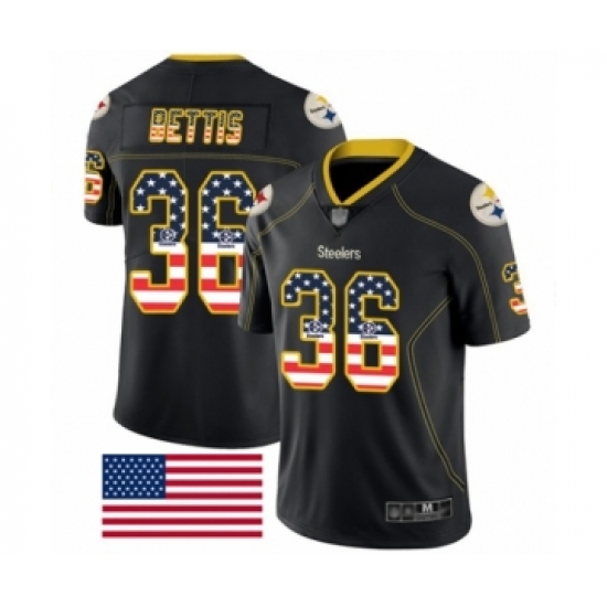 Men's Pittsburgh Steelers #36 Jerome Bettis Limited Black Rush USA Flag Football Jersey
