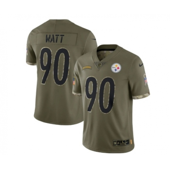 Men's Pittsburgh Steelers #90 T. J. Watt 2022 Olive Salute To Service Limited Stitched Jersey