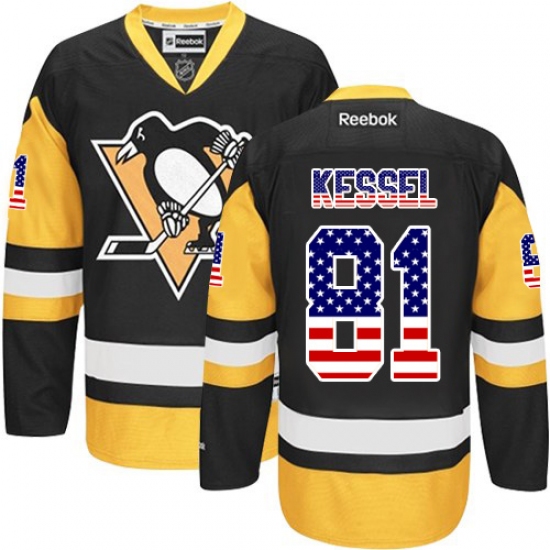 Home>NHL>Pittsburgh Penguins>Phil Kessel>Men's Reebok Pittsburgh Penguins #81 Phil Kessel Premier Black/Gold USA Flag Fashion NHL Jersey